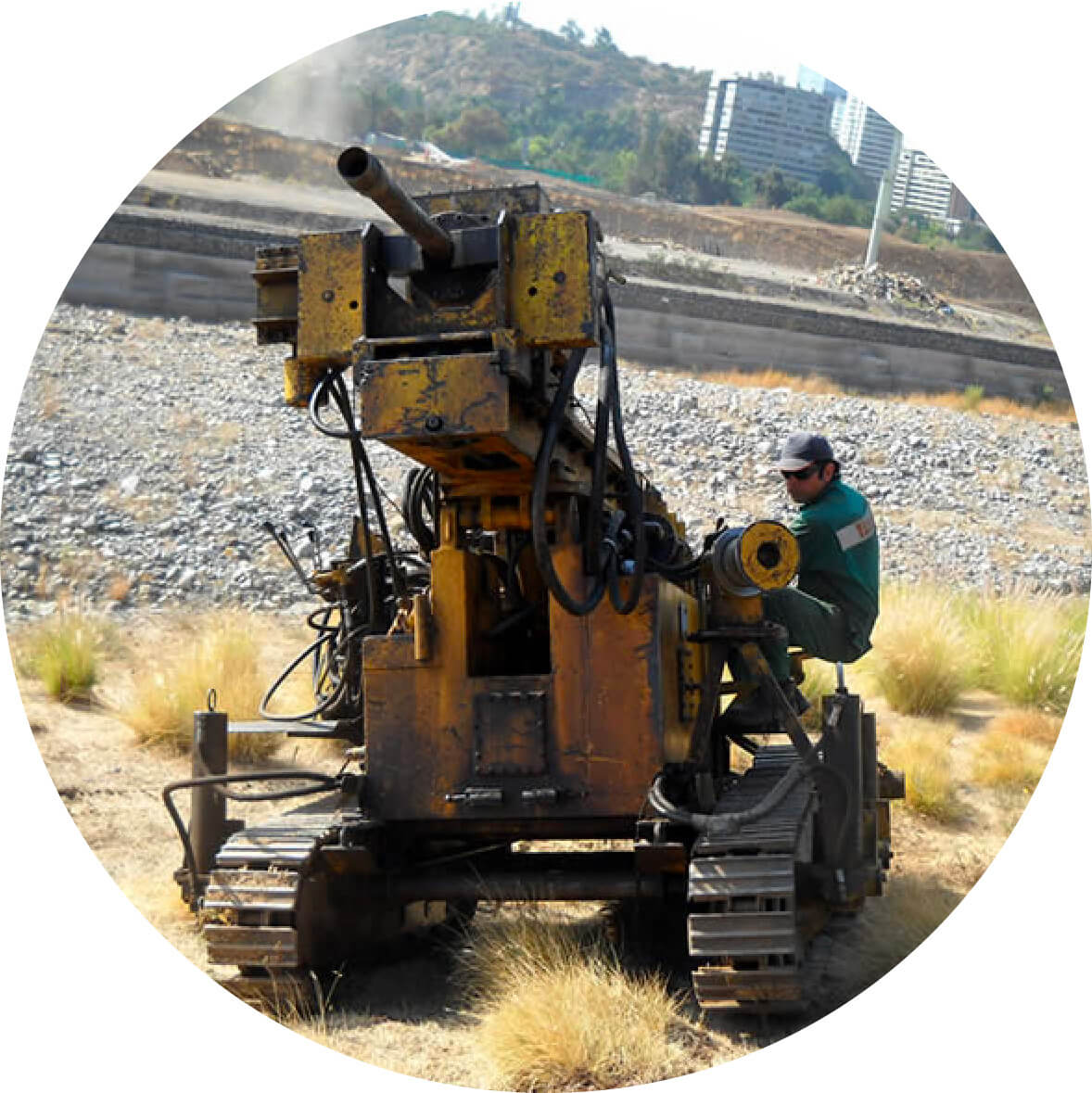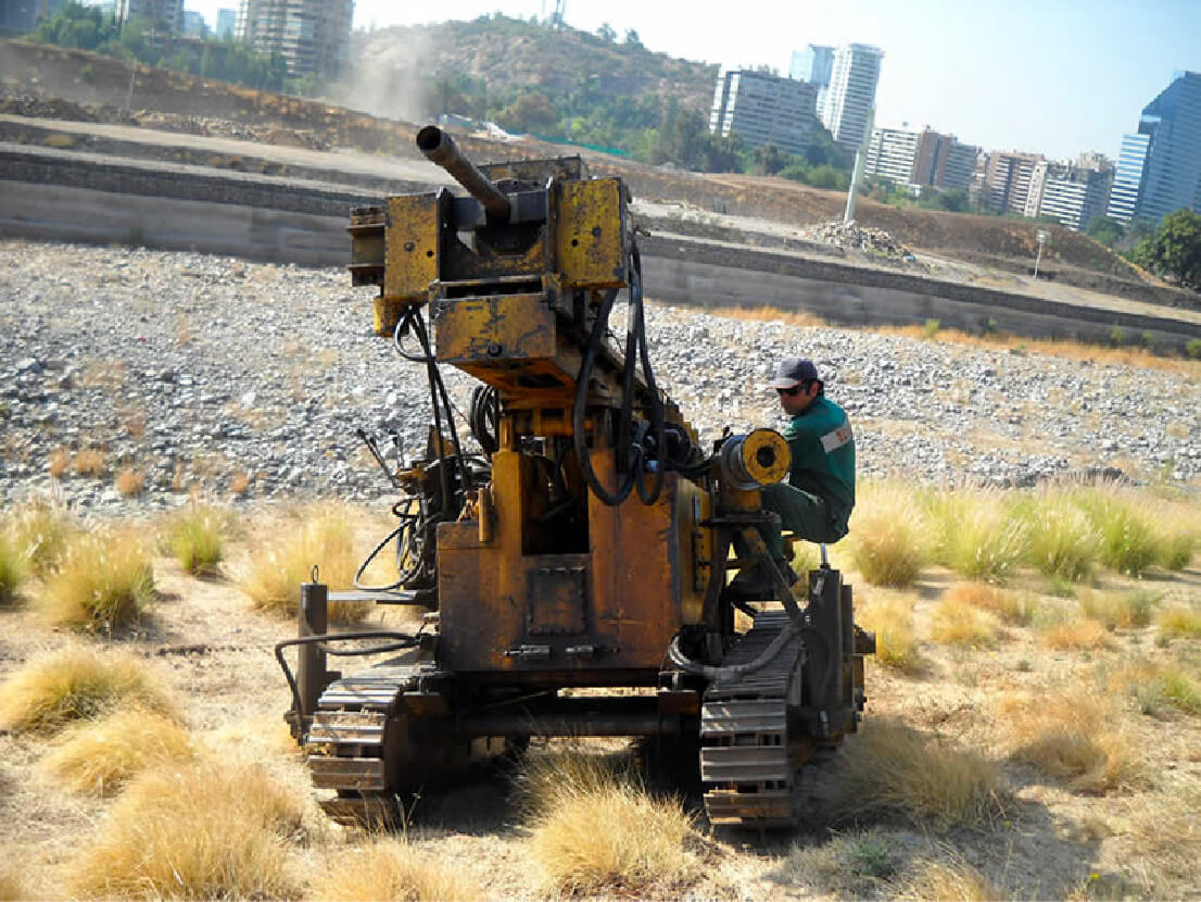 Cuenta con equipos de perforación a rotación en diámetro HQ y NQ junto con equipamiento para realizar ensayos in situ tales como SPT, Permeabilidad de Le Franc Lugeon y Down Hole. Para Calicatas se cuenta con equipamiento para toma de densidad in situ, tester torvane para determinación de resistencia al corte y martillo Smith para resistencia a la compresión en roca y penetrómetro de bolsillo.